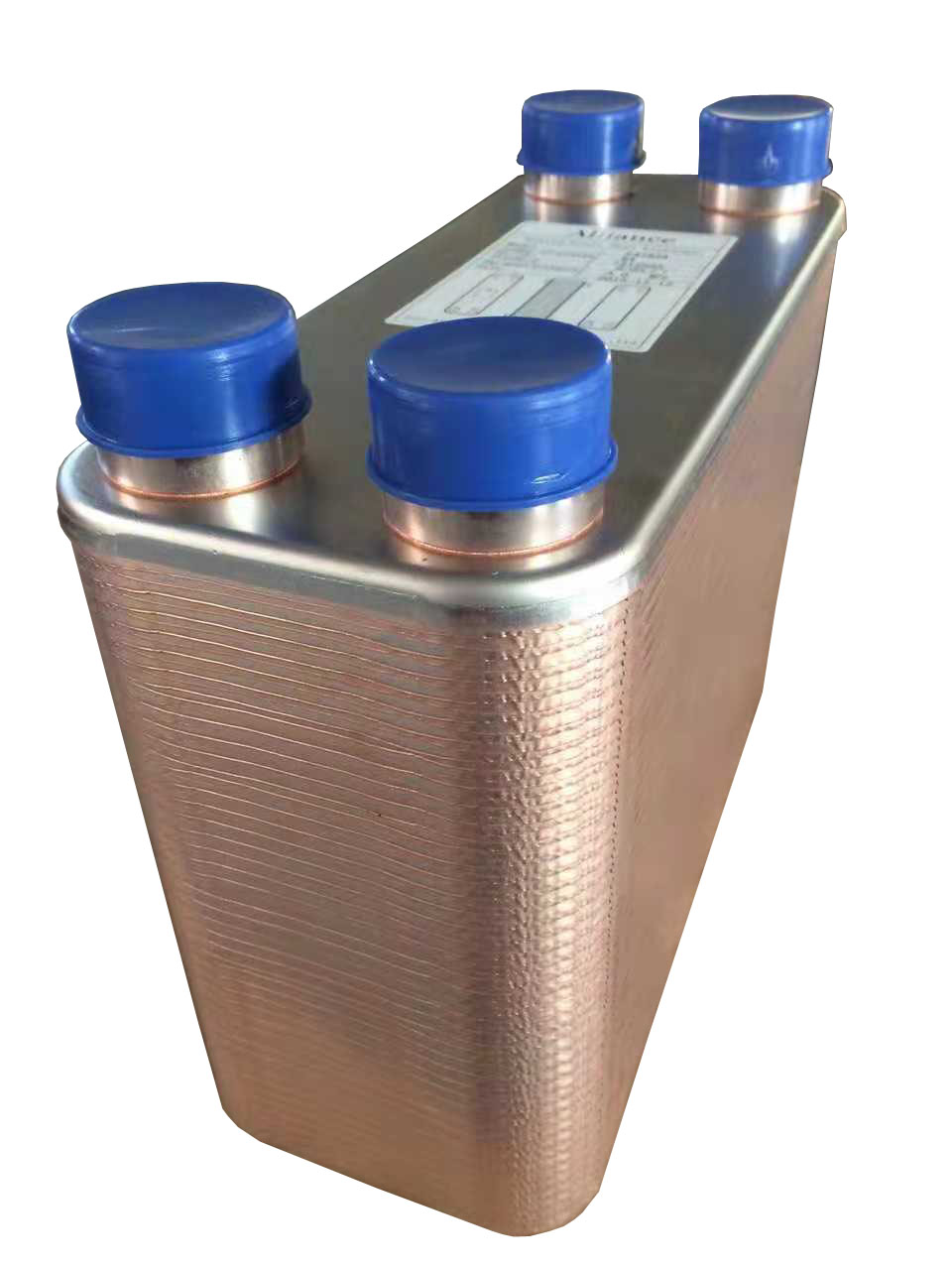 BRT型釬焊板式換熱器是以純銅(或鎳)為釬料,在真空釬焊爐中,將相鄰不銹鋼波紋板片釬接而成的板式換熱器。板片間形成通道,邊角上的角孔分布使兩種介質(zhì)在通道中交替流動,數(shù)目眾多的接觸點提供了很好的機(jī)械強(qiáng)調(diào),接觸點和邊緣由銅(或鎳)釬焊密封,具有結(jié)構(gòu)緊湊,體積小,重量輕,傳熱效率高,制冷劑填充總量小,適應(yīng)范圍廣,價格性能比好等特點。